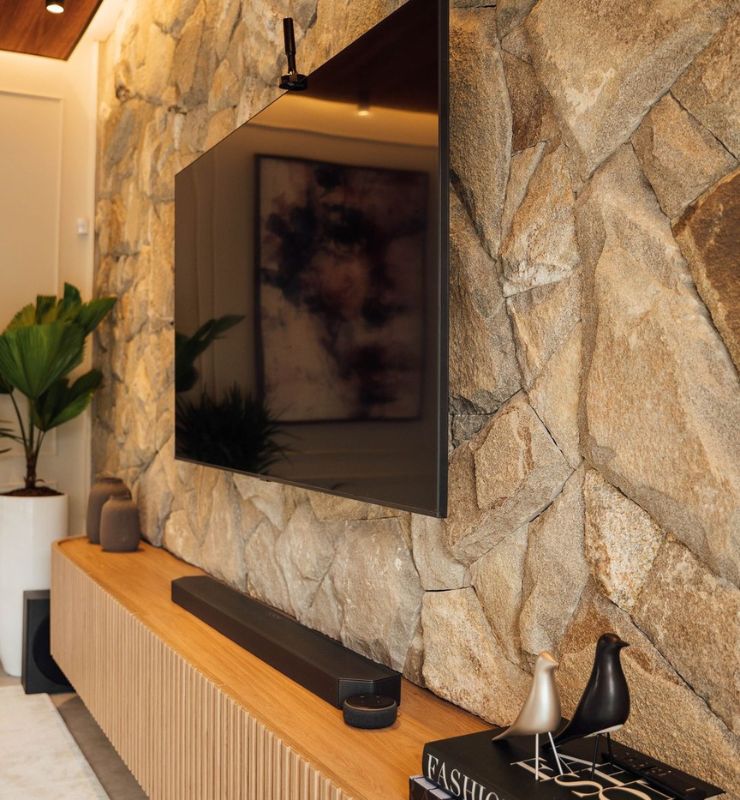 A rica diversidade tonal da Pedra Moledo destaca sua autenticidade e origem costeira, acrescentando um charme único a cada peça. Suas tonalidades variam suavemente, formando um mosaico natural que reflete sua beleza singular.